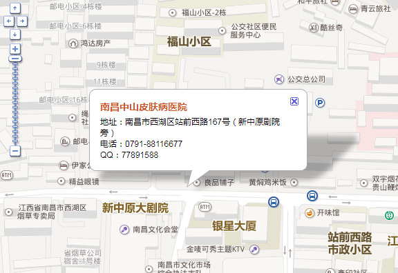 导航到南昌中山皮肤病医院即可。具体地址南昌市西湖区站前西路167号(新中原剧院旁)