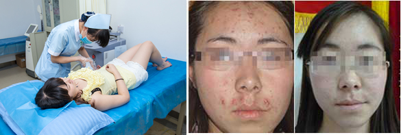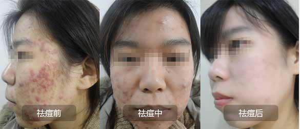 病情描述:面部患重度痤疮,皮肤的损害就是丘疹、脓疱、粉刺,经过几次内外结合排毒治疗,炎症控制了,脓疱退了,现在脸上基本上已经正常了。