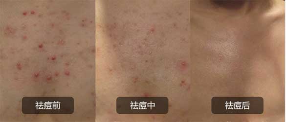 通过轻度痘痘治疗,解决由于毛囊口狭窄导致皮脂分泌过多、毛囊皮脂腺导管堵塞问题,使得皮肤表层毛囊壁恢复正常,正常排除皮脂腺,痘痘消失后适度中药调理即可。